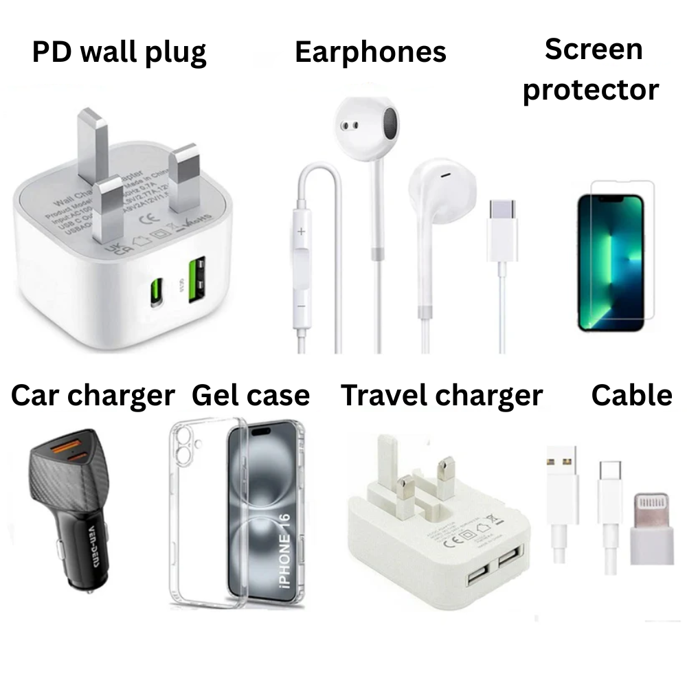 For iPhone 17 Series Magnetic Case + 20W PD Plug + Charging Cable + Wired Earphone + Screen protector - Bundle
